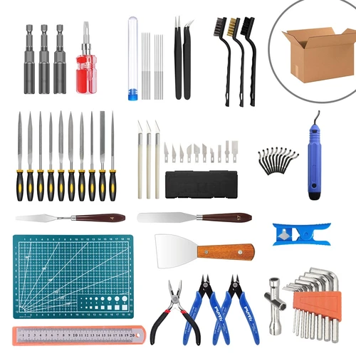 Package Contents | 5 x 0.35mm Cleaning Needle 5 x 0.4mm Cleaning Needle 3 x Cleaning Brushes 1 x Bent Tip Tweezers 1 x Straight Tweezers 3 x Removal Tools Of Different Types 1 x Deburring Handle 10 x Deburring Blades 10 x Needle Files 13 x Carving Knife Set 1 x Teflon Tube Cutting Tool 1 x Pliers 2 x Cutter 8 x Allen Wrench Set 1 x Cross Sleeve 1 x Dual-Function Screwdriver 1 x Screwdriver Handle 3 x Socket Wrenches Of Different Sizes 1 x Stainless Steel Straightedge-20cm 1 x A5 Cutting Mat |